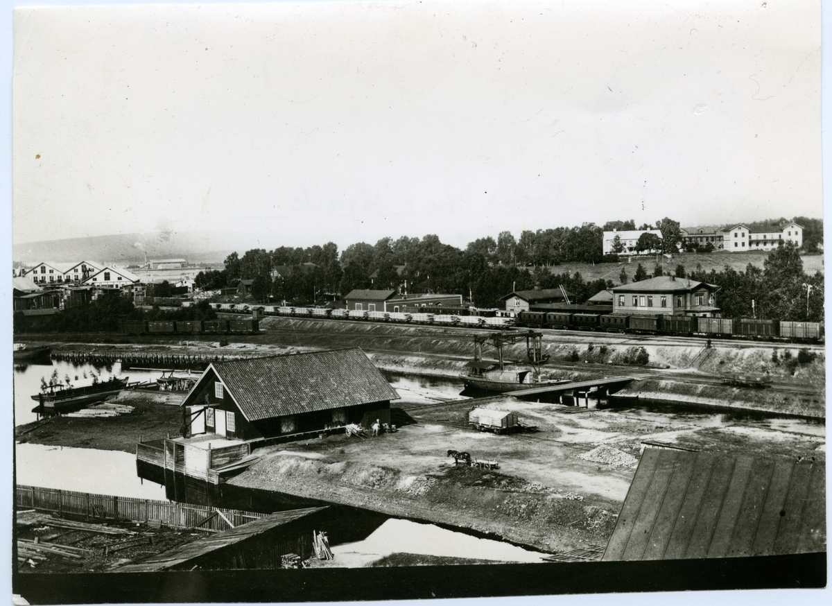Korsnäs sågverk och järnvägsstation samt ett tågsätt sågade trävaror.