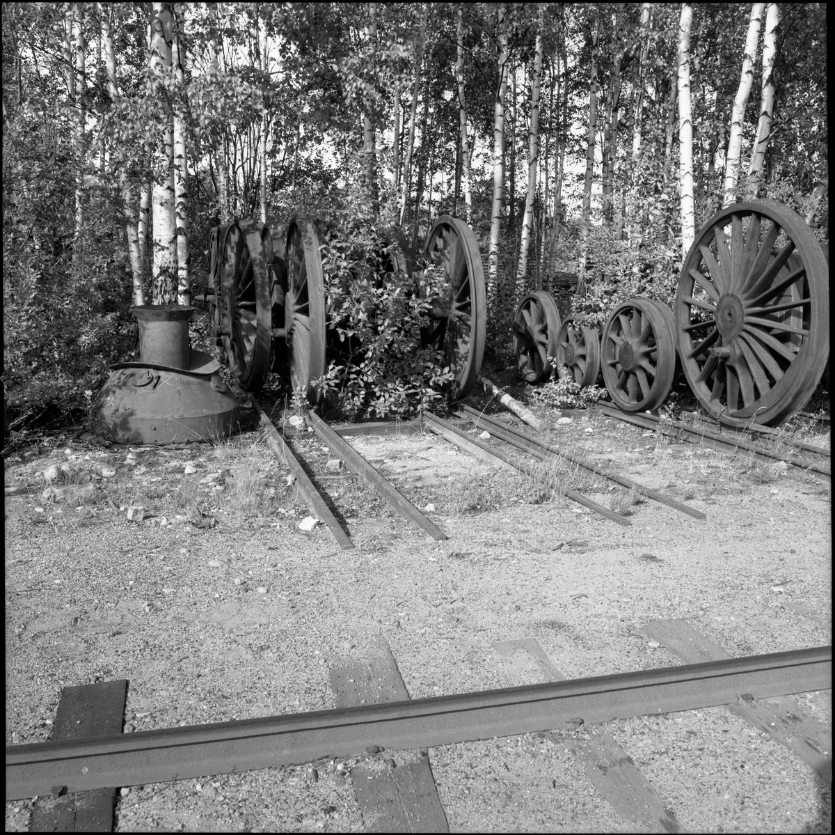 Ångdom och vagnshjul mm på Vislanda skrotplats.