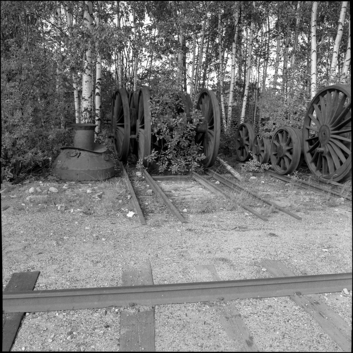 Ångdom och vagnshjul mm på Vislanda skrotplats.