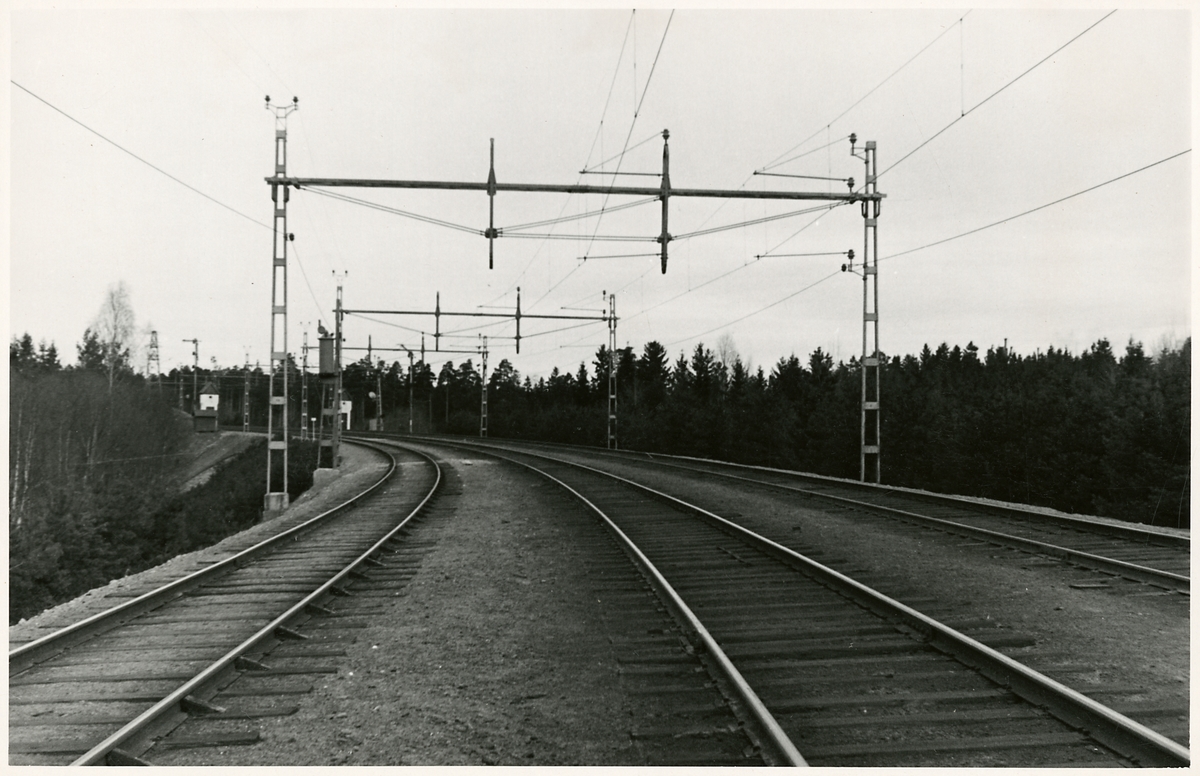 På linjen på in emot dåvarande Södertälje Södra station. Yttre delen av stationsområdet skymtar till vänster i bild.