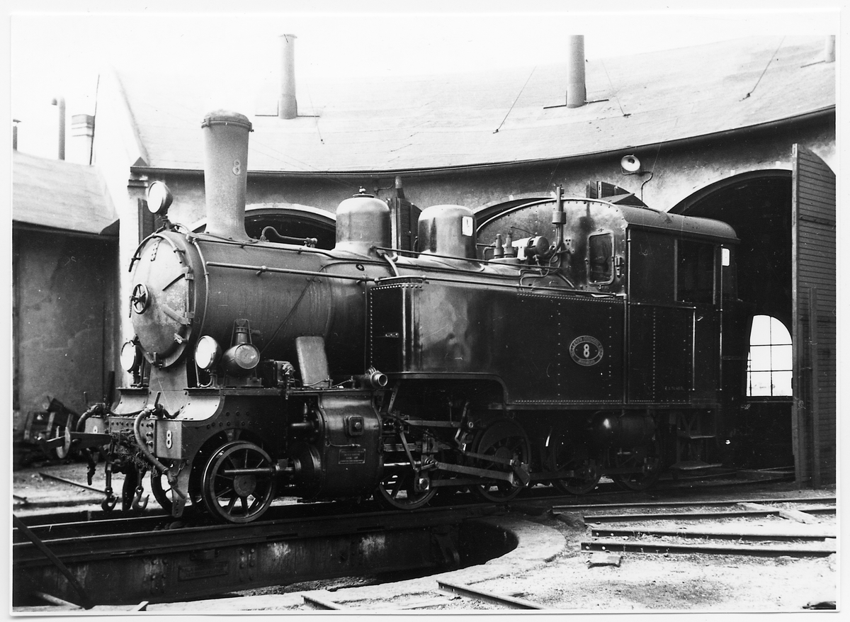 Mellersta Östergötlands järnvägar, MÖJ lok 8 utanför lokstallet vid Linköping Norra station.