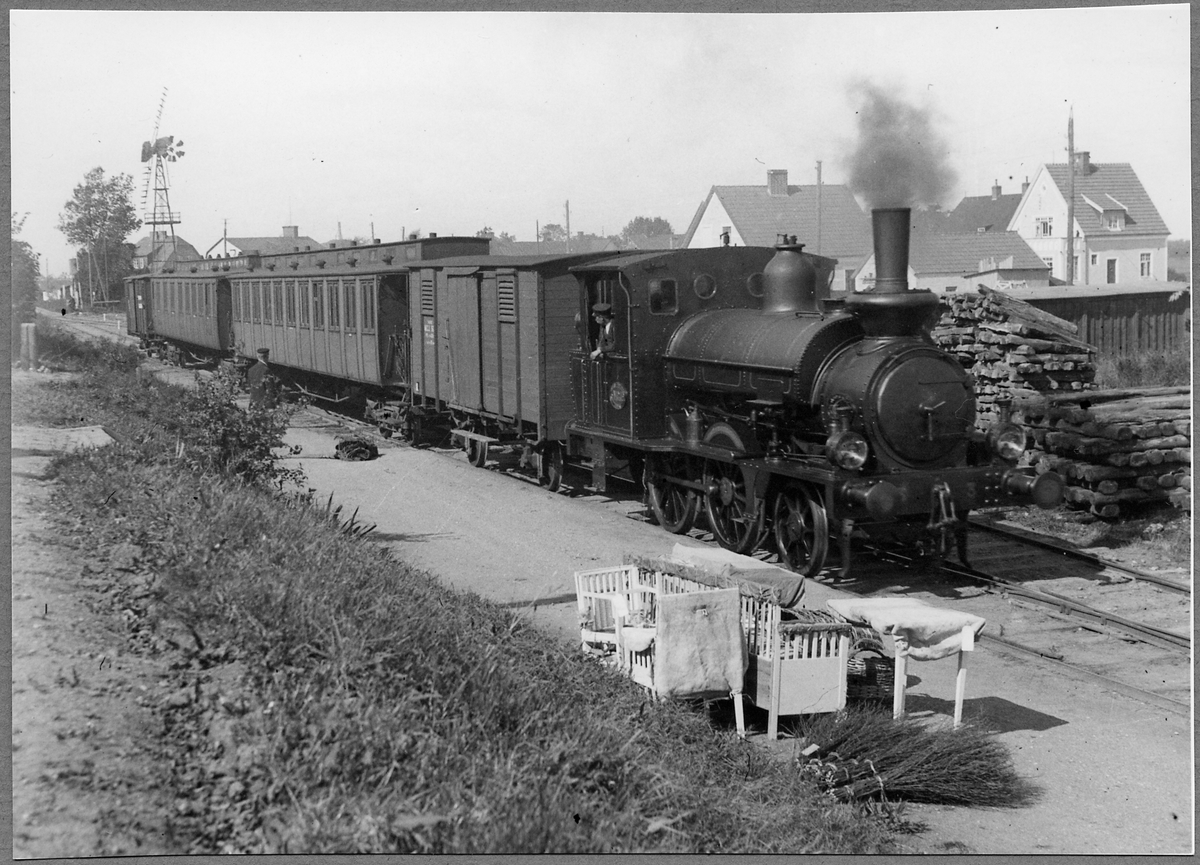 Malmö-Genarps järnväg, MGJ lok 3 "Qvarnby" med persontåg vid Hohög station.