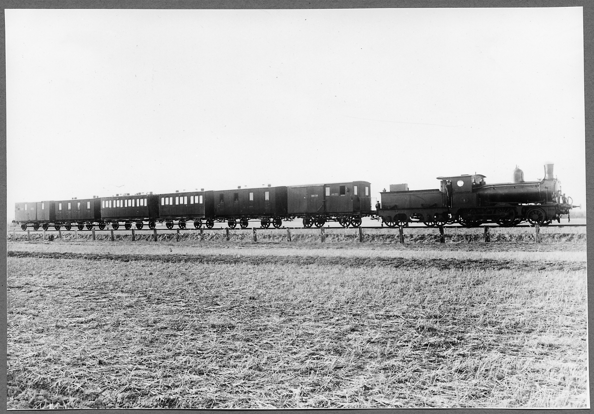 Stockholm Västerås Bergslagens Järnväg, SWB A2 6 , med personvagnar fotograferat vid 50-årsjubileum.
