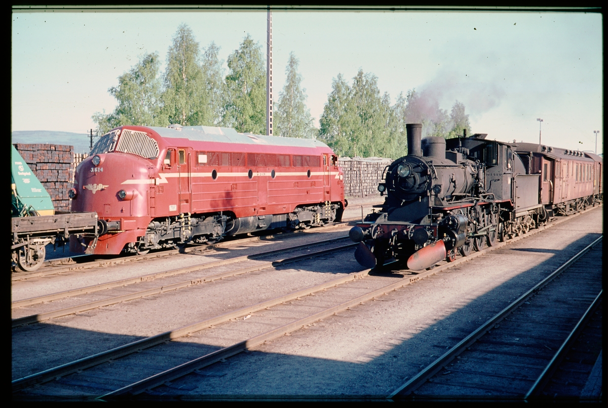 Norges Statsbaner NSB 27a 296 och NSB Di 3.614. med godståg på Rørosbanen.