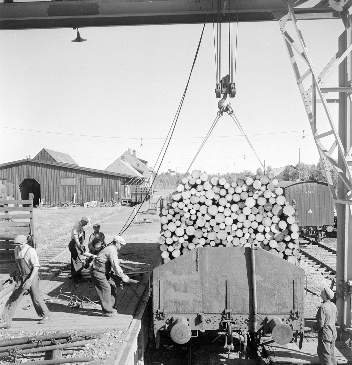 Statens Järnvägar, SJ O-vagn. Omlastning av massaved i Haparanda.