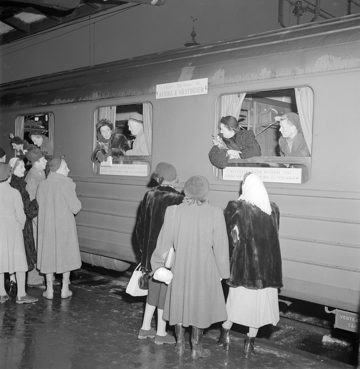 Svenska Amerika Linjens Solkryss resenärer till Göteborg för vidare befordran till Afrika och Västindien.