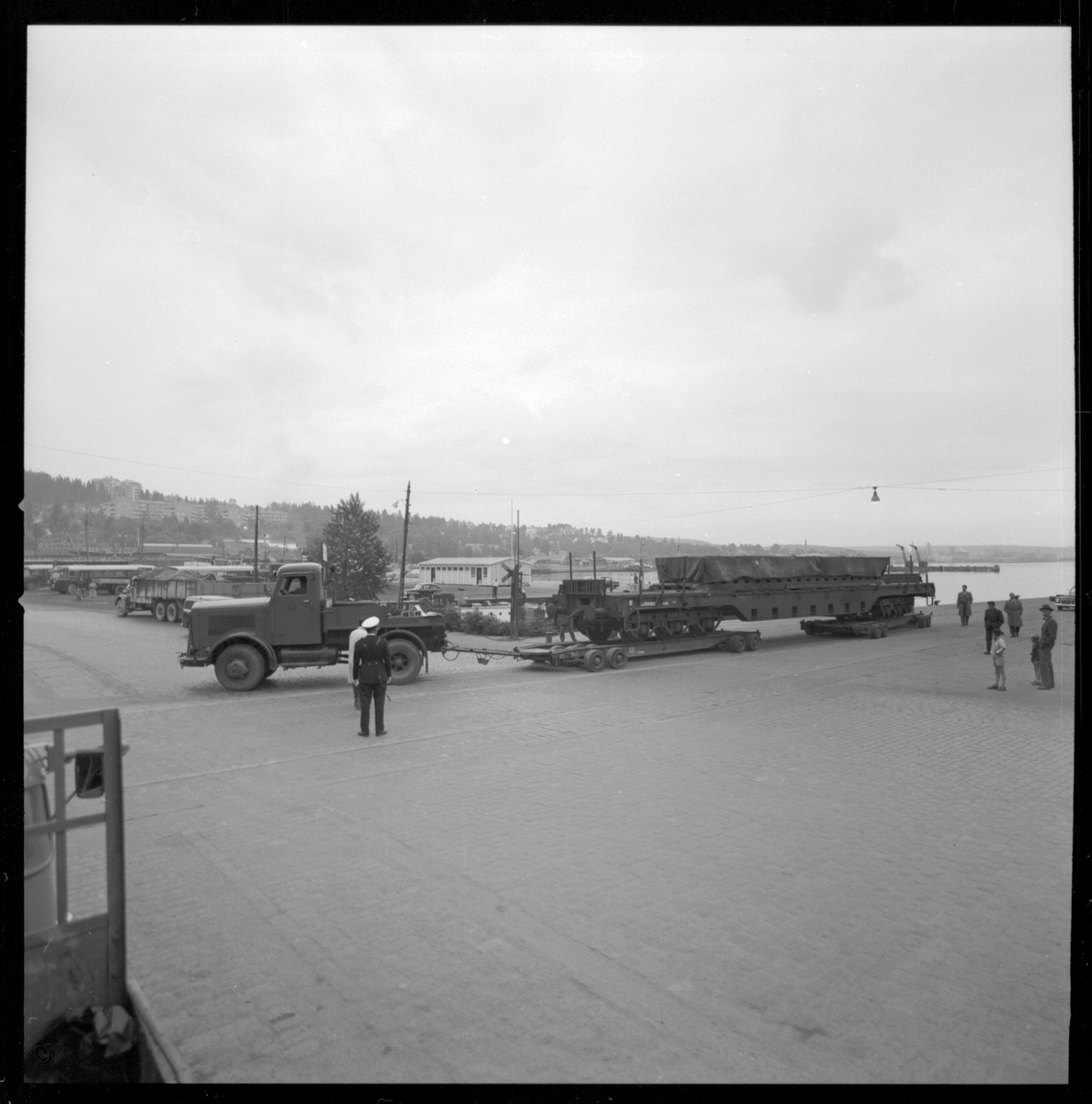 Statens Järnvägar, SJ Sdu 100403. Specialtransport med vagnbjörn. Fundament för slipmaskin till Ortviken pappersbruk