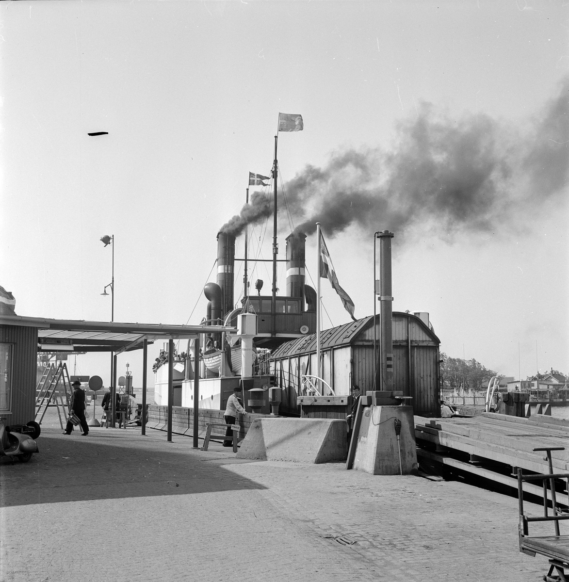 Dansk ångfärja med utländsk godsvagn vid Helsingborgs färjestation
