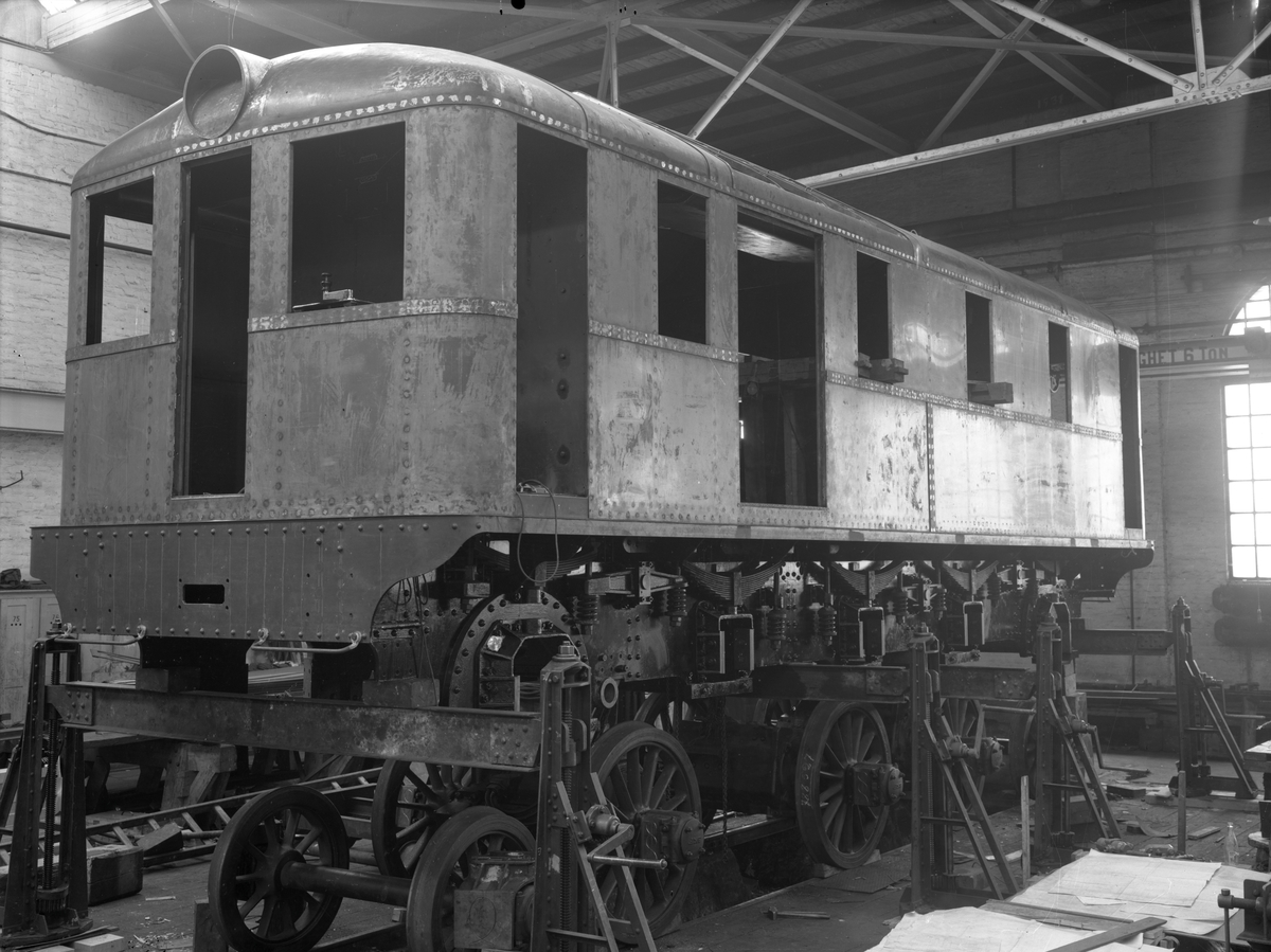 Stockholm-Nynäs Järnväg, SNJ ÄF 10 under byggnad på Kockums Mekaniska Verkstads AB.