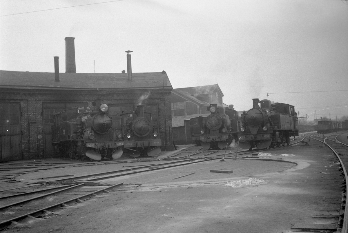 Från vänster SJ S3t 4053, före detta Halmstad Bolmens Järnväg, HBJ lok 7, SJ W4t 4006, före detta Västra Blekinge Järnväg, VBlJ lok 19, SJ Gt 4049 samt SJ S7t 4034, före detta Karlshamn Vislanda Bolmens Järnväg, KVBJ lok 20.