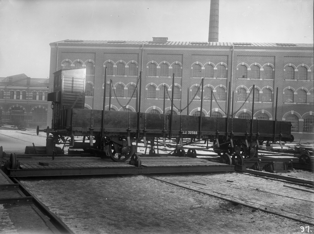 Statens Järnvägar, SJ NN5 32566. Vagn med bromshytt. Kockums Mekaniska Verkstads AB