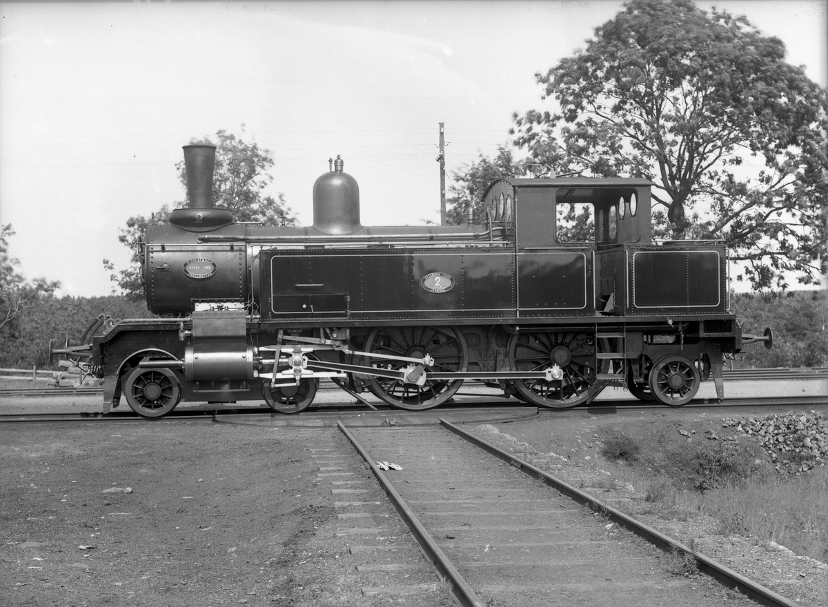 GSJ A 2. Leveransfoto. Ånglok på vändskiva. Loket tillverkades av Nohab. Skrotades 1964.