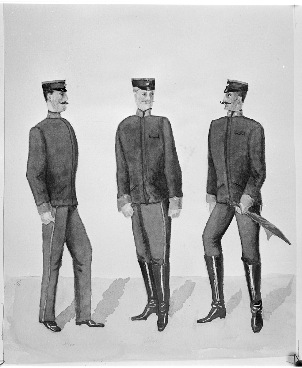 Titel: Förslag till uniformer av Carl Gustaf af Geijerstam.