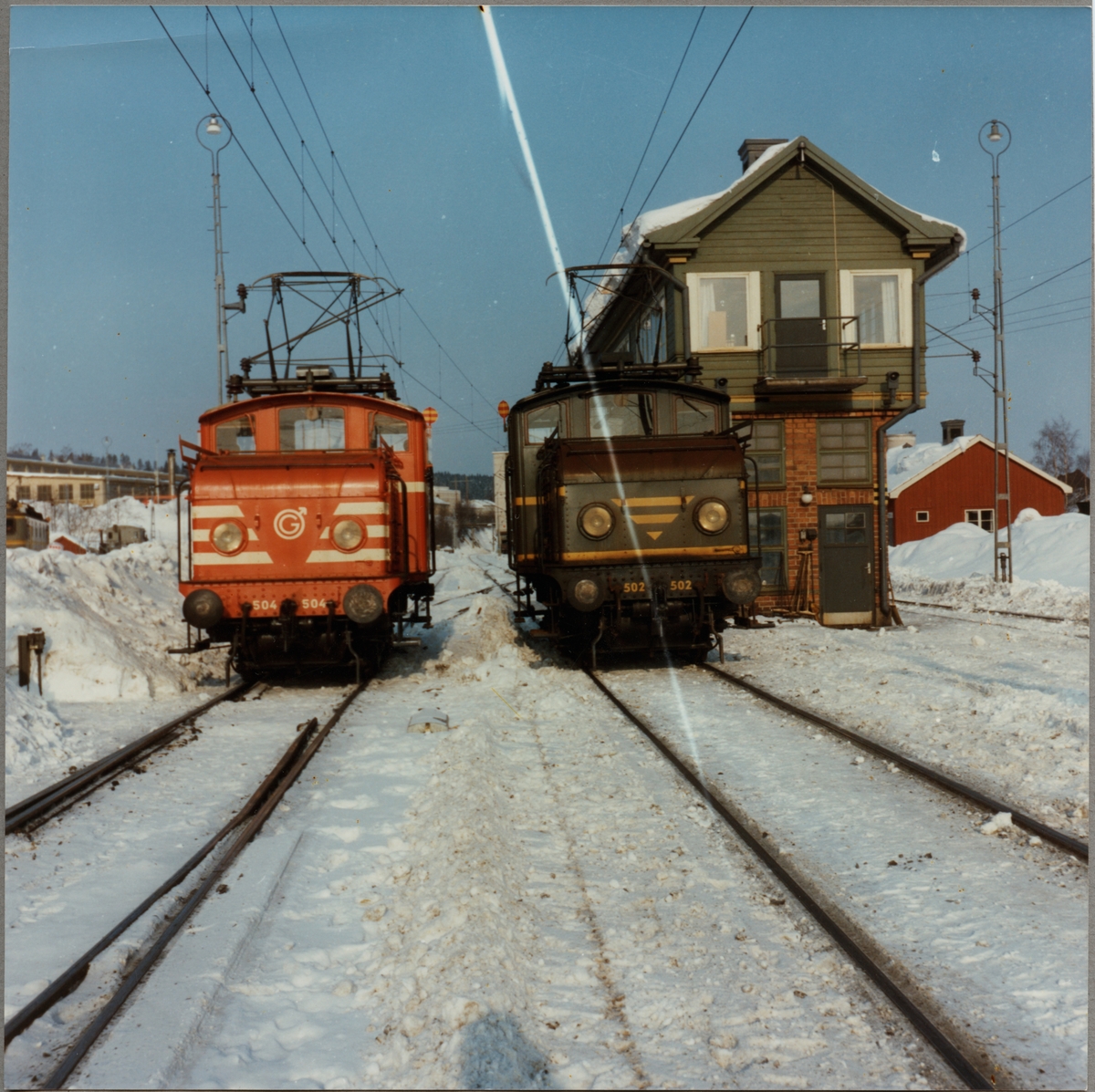 Trafikaktiebolaget Grängesberg – Oxelösunds Järnvägar, TGOJ Ub 504 och TGOJ Ub 502 på Grängesbergs malmbangård.