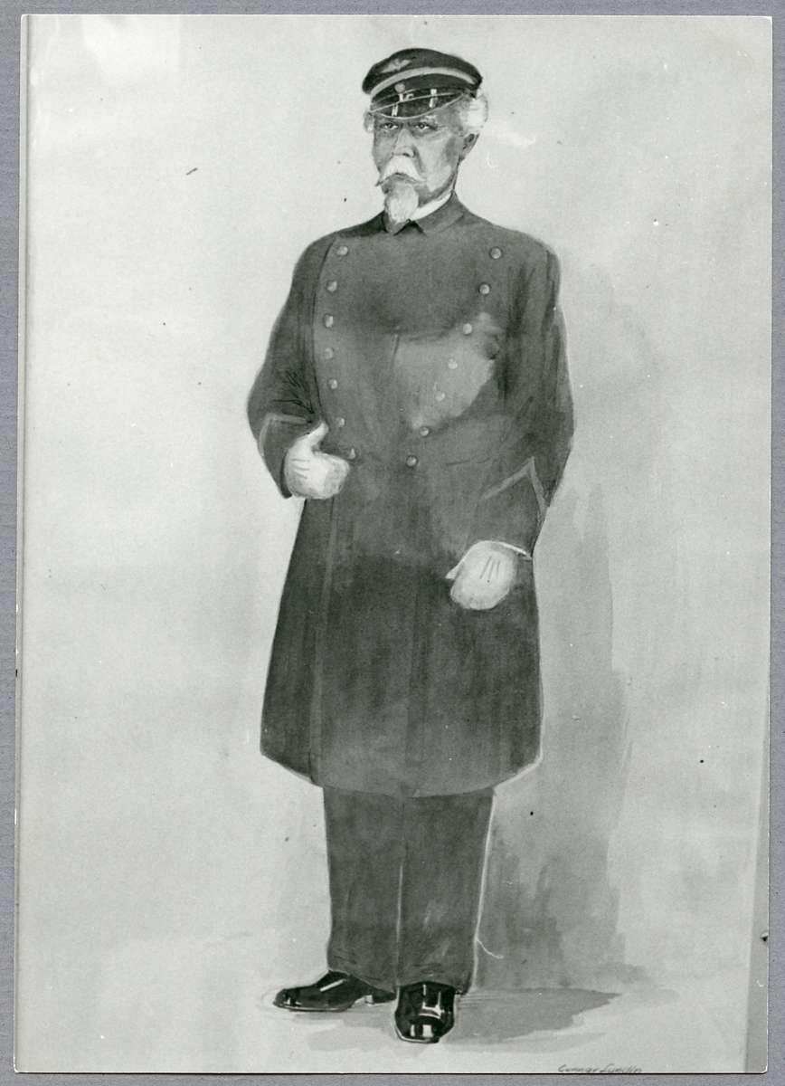 Titel: Målning av en okänd stationsinspektor i uniform.