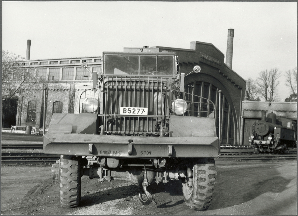 Bärgningsbil tillhörande Statens Järnvägar, med draganordning i fram, uppställd vid Hagalund.