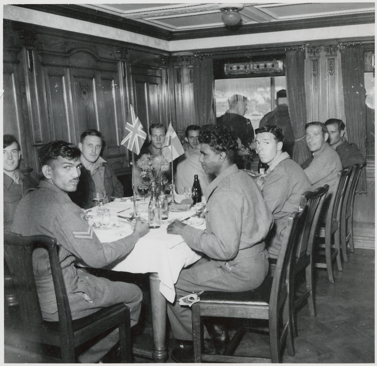 Engelska krigsfångar serveras frukost ombord på Drottning Victoria.