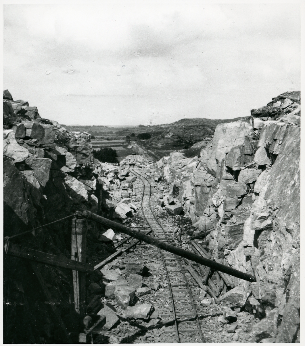 Genomsprängning av berget i hovås för byggandet av Göteborg - särö järnväg.