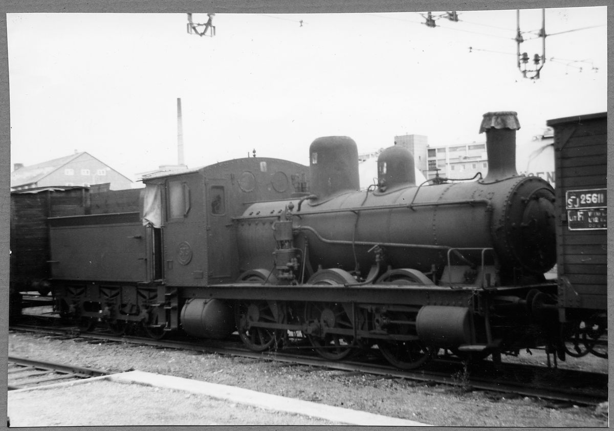 Avställt ånglok väntar på skrotningen. Statens Järnvägar, SJ Kd 573.