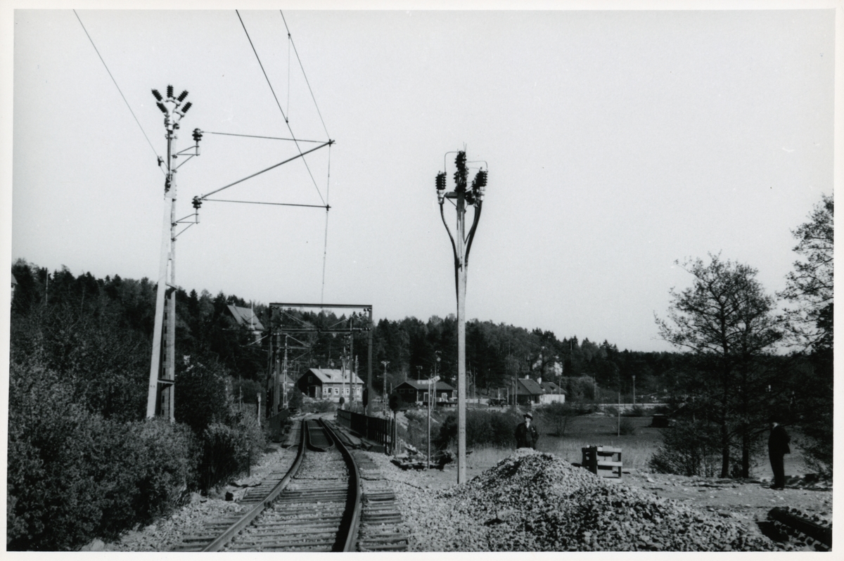 Titel: Svängbara järnvägsbron vid Stäket efter elektrifiering, på sträckan mellan Stäket och Kungsängen.