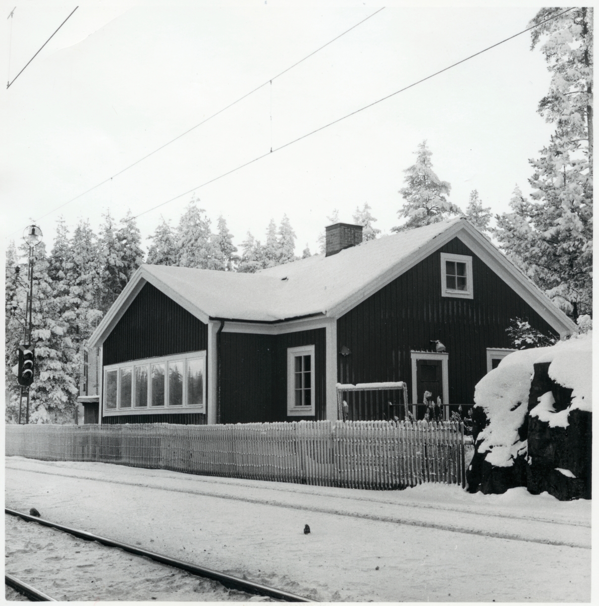 Banvaktstuga vid Harsjön som användes som fritidsgård av Trafikaktiebolaget Grängesberg - Oxelösunds Järnvägar, TGOJ.