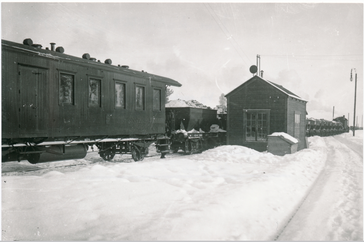 Bangård på Svartön vid Luleå station. Väghuset på övre bangården.