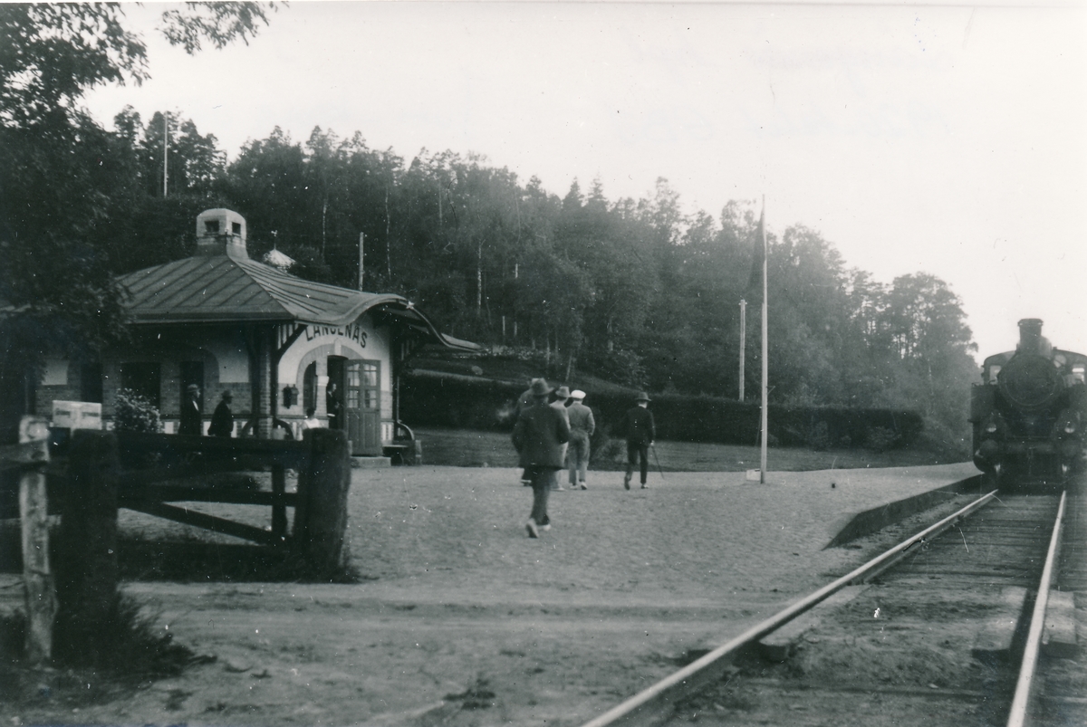 Hållplats vid Landvettersjön, anlagd 1906. Envånings stationspaviljong, väntsalsbyggnad, ritad av arkitekt Folcke.