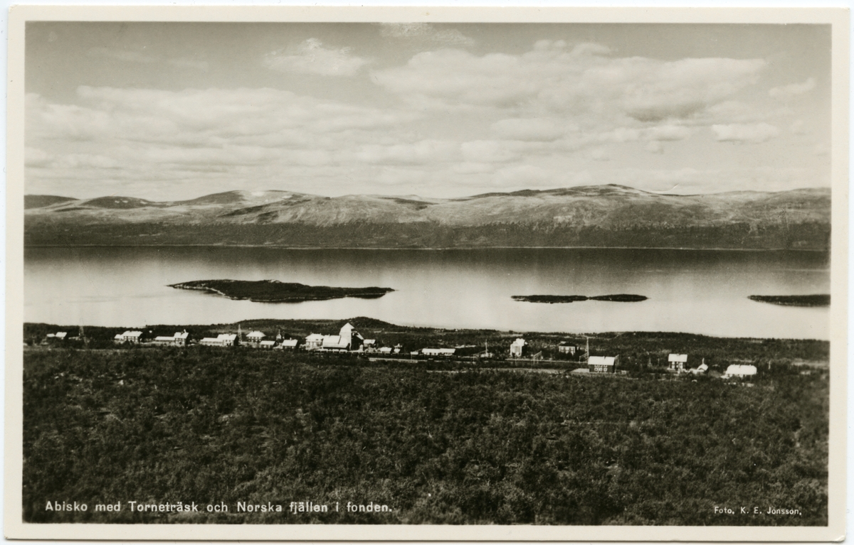 Abisko Turiststation med Torneträsk och Norska fjällen i bakgrunden.
