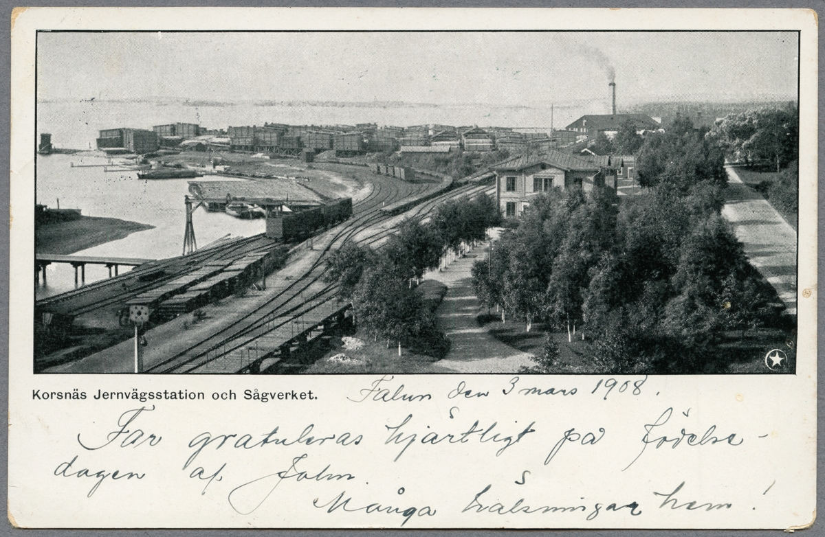 Korsnäs station och sågverk med utsikt över Runnsjön.
