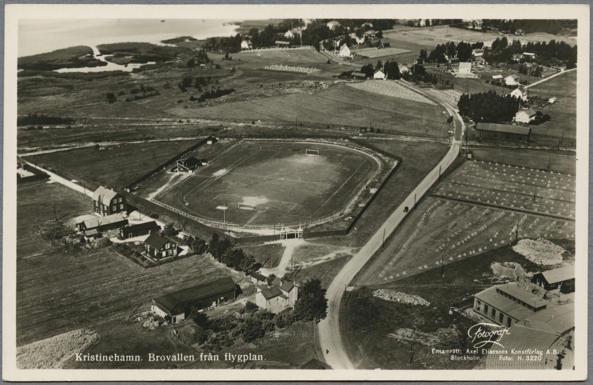 Flygfoto över Kristinehamn med Brovallen idrottsplats i bild.