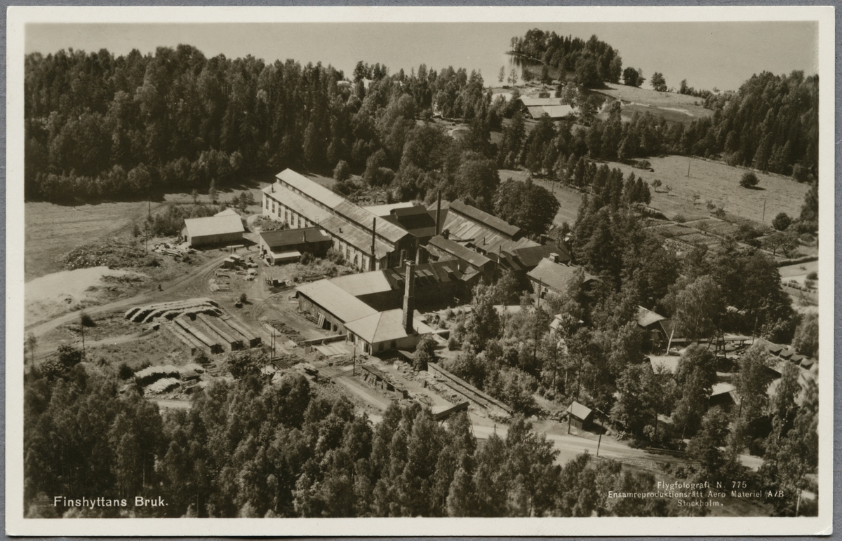 Flygfoto över Finnshyttans järnverk, norr om Filipstad.