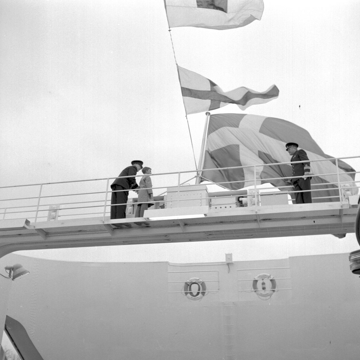 Kungabesöket på tågfärjan "Trelleborg" i Stockholm, kronprins Carl Gustaf sedemera Carl XVI Gustaf. Generaldirektör Erik Upmark