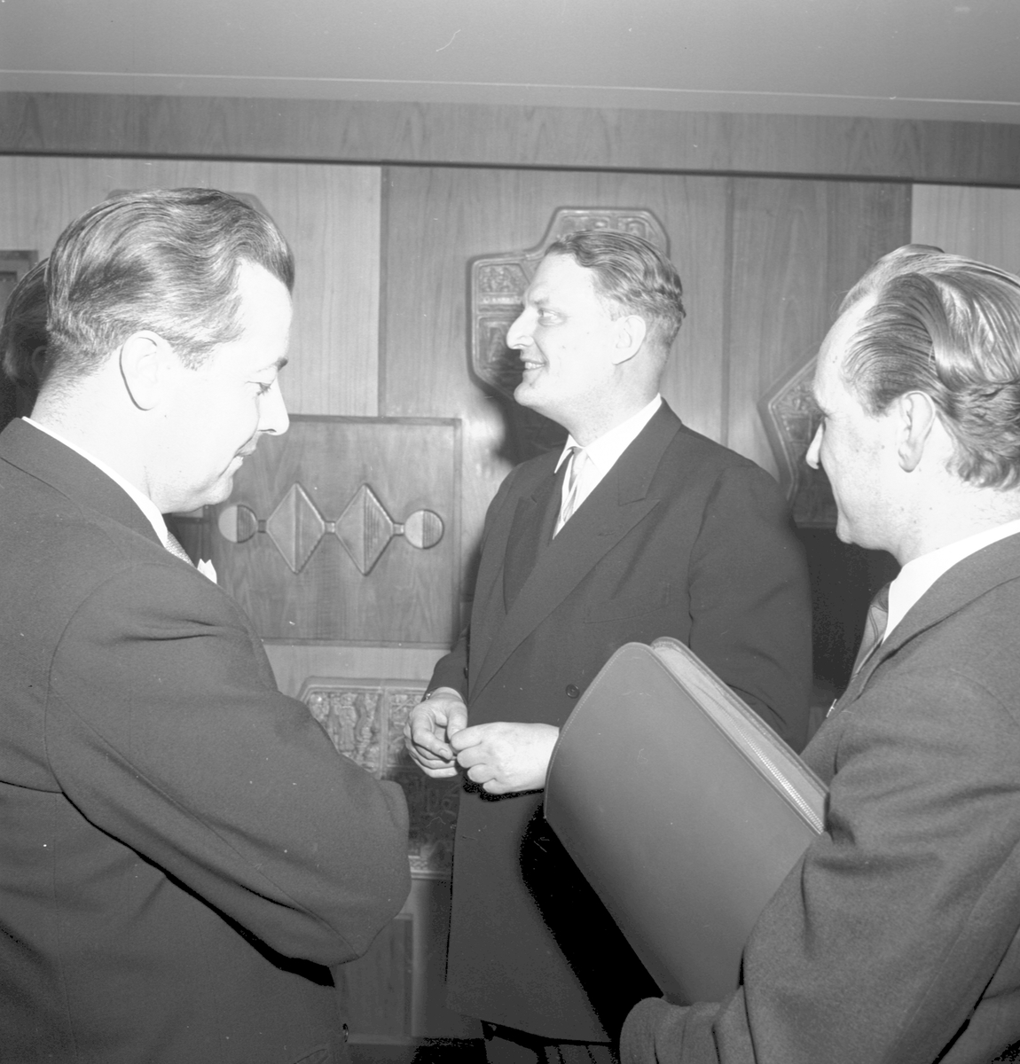 M/S '"Trelleborg", cocktailparty. Generaldirektör Erik Upmark i mitten.