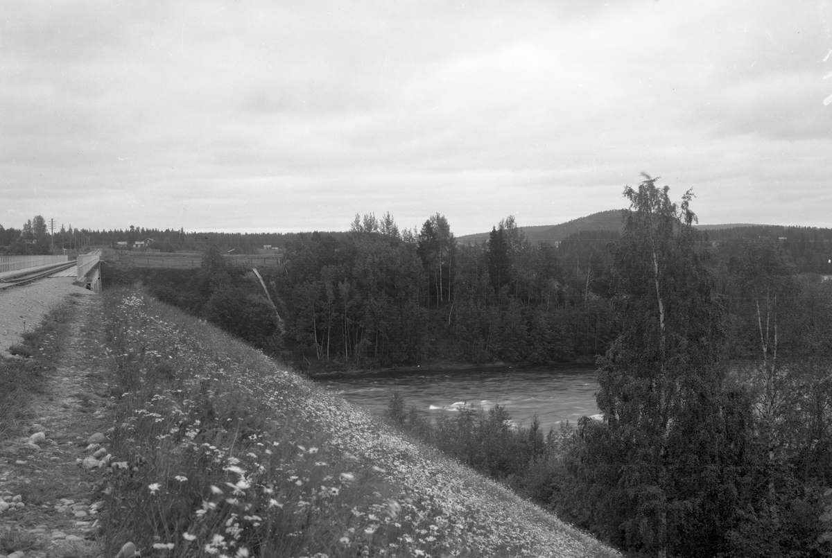 Banslänt med prästkragar vid Skellefteå älv. Slindsbro. Klintmark - Medle.