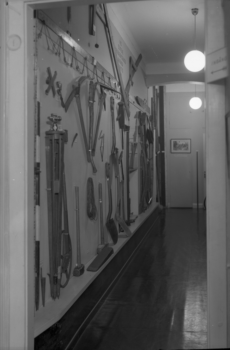 Korridor, järnvägsbyggnader, verktyg m m; Järnvägsmuseet.