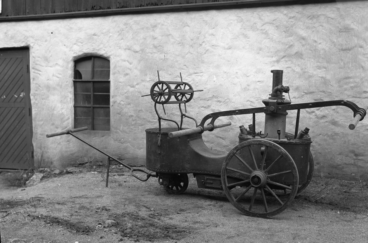 Titel: Brandspruta på hjul med eldstad; Järnvägsmuseet. Fr Östersund. Ark nr 5204.