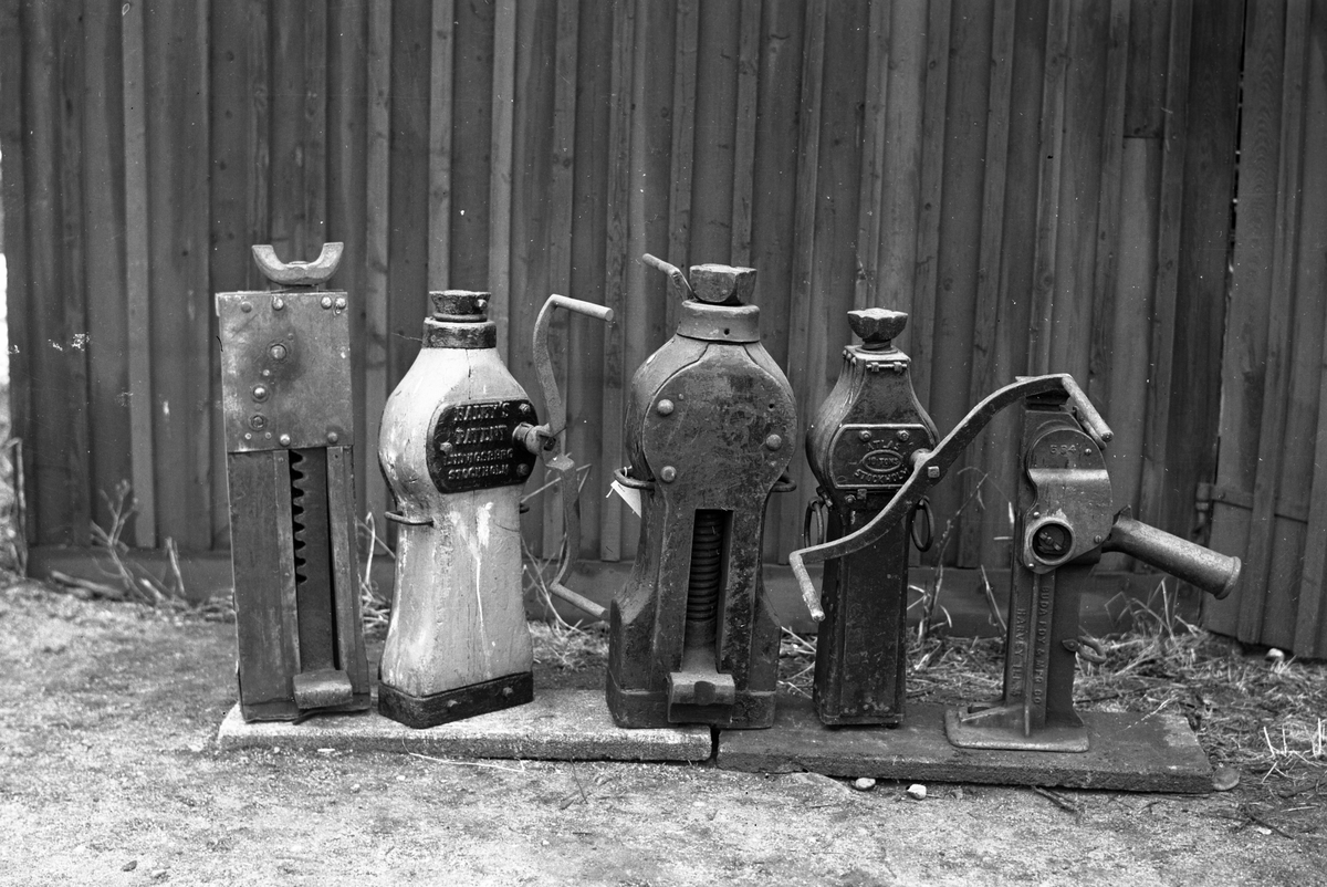 Domkrafter, 5 st äldre; Järnvägsmuseet. Ark nr 5202, 5008, 1228, 1227, 5201.