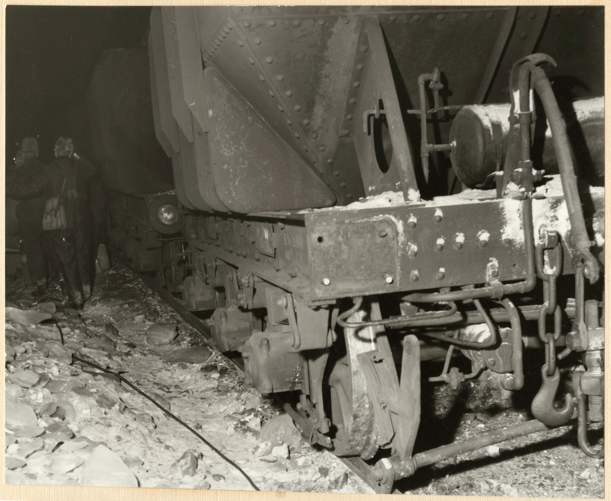 Statens Järnvägar, SJ Mas malmvagn skadad efter urspårning den 17/4 1956 på sträckan mellan Vassijaure och Hundalen.