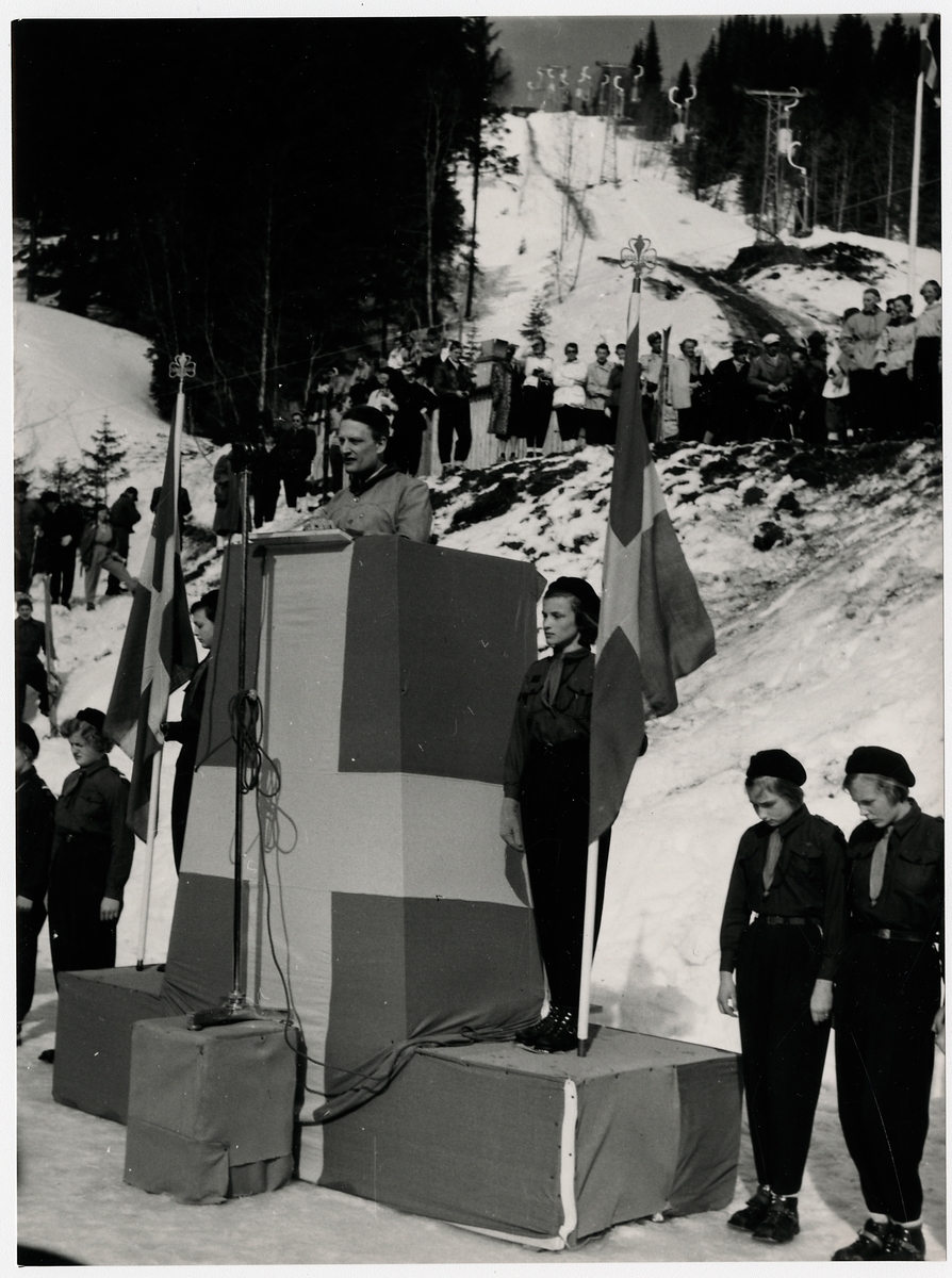 Generaldirektör Erik Gustaf Johan Upmark invigningstalar vid invigningen av Åre linbana.
