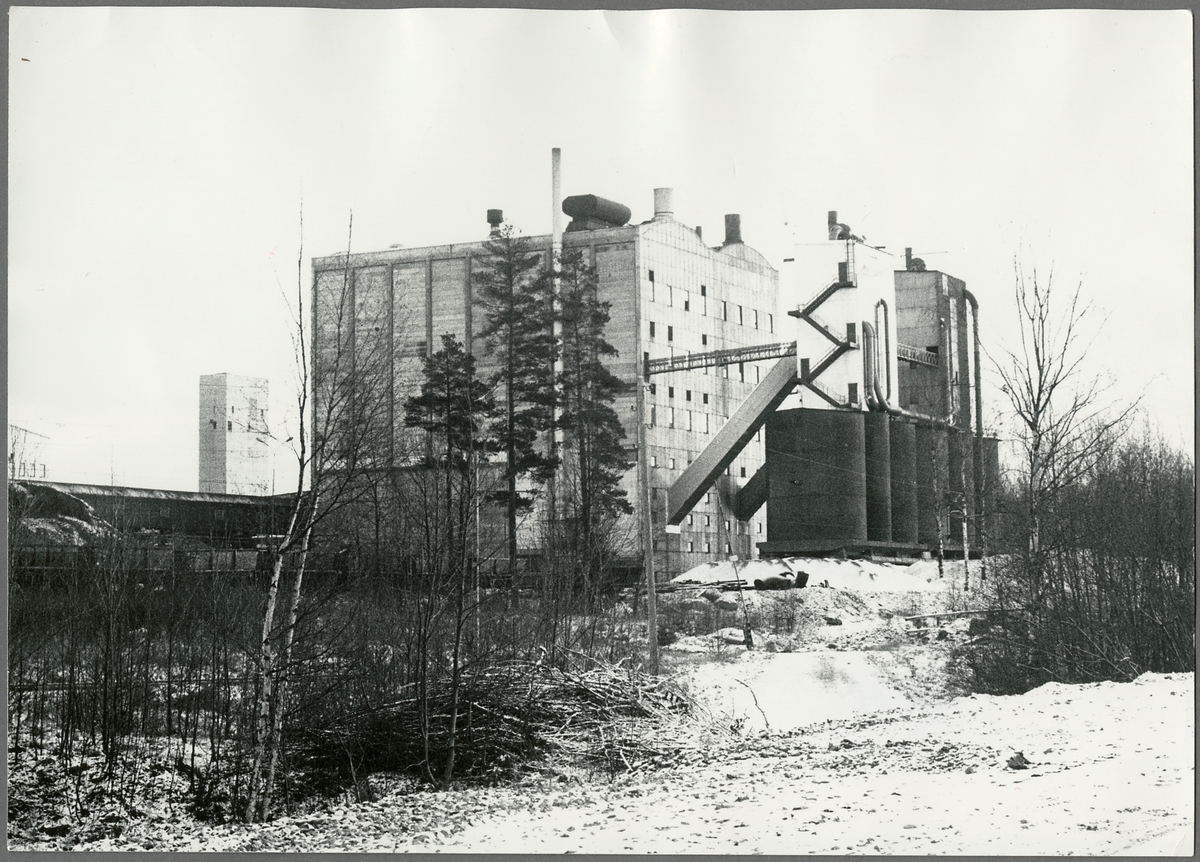 Fabriksbyggnad järnmalmspellets framställning vintertid.