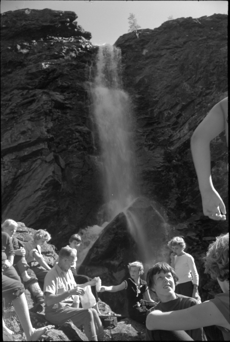Fika vid vattenfallet under utflykten.