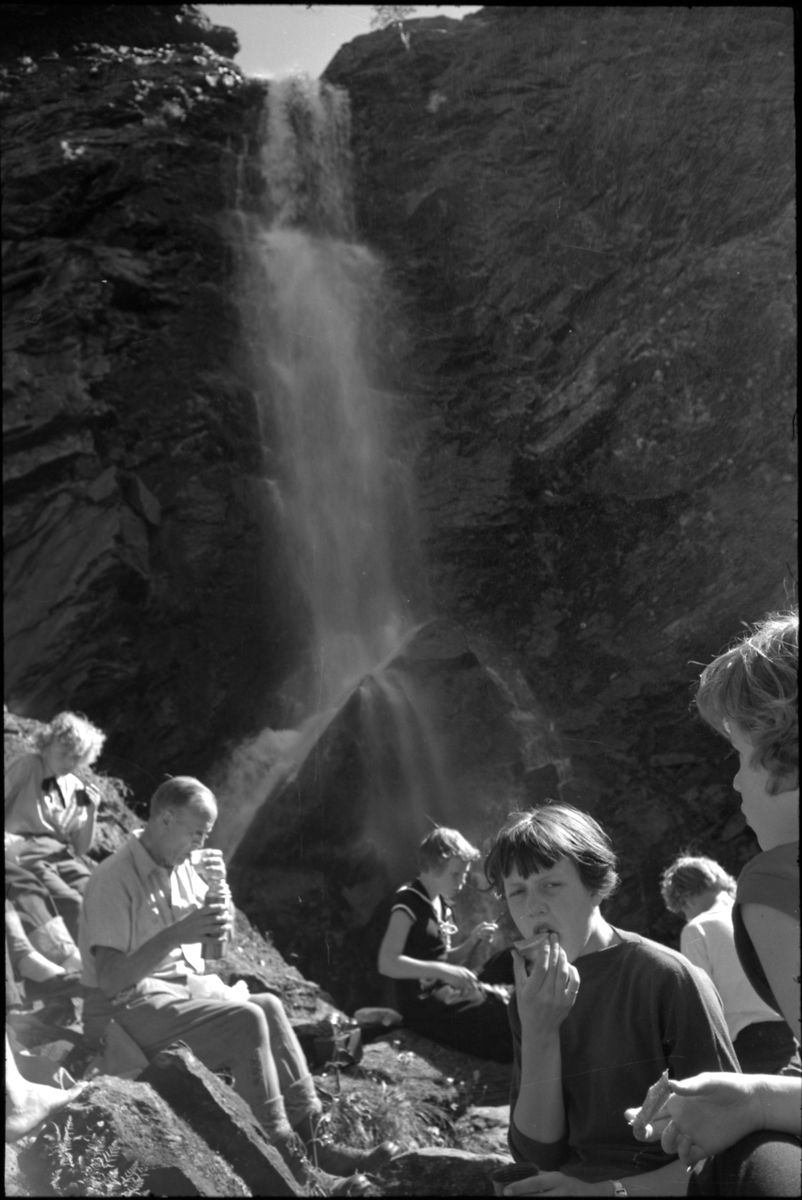 Fika vid vattenfallet under utflykten.