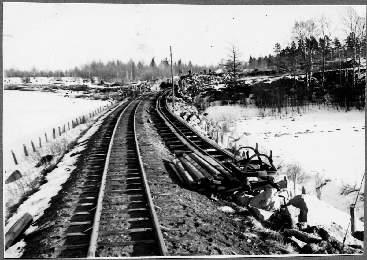 Början av arbetet med vägomläggning och breddning till normalspår på linjen mellan Överum osh Storsjö.