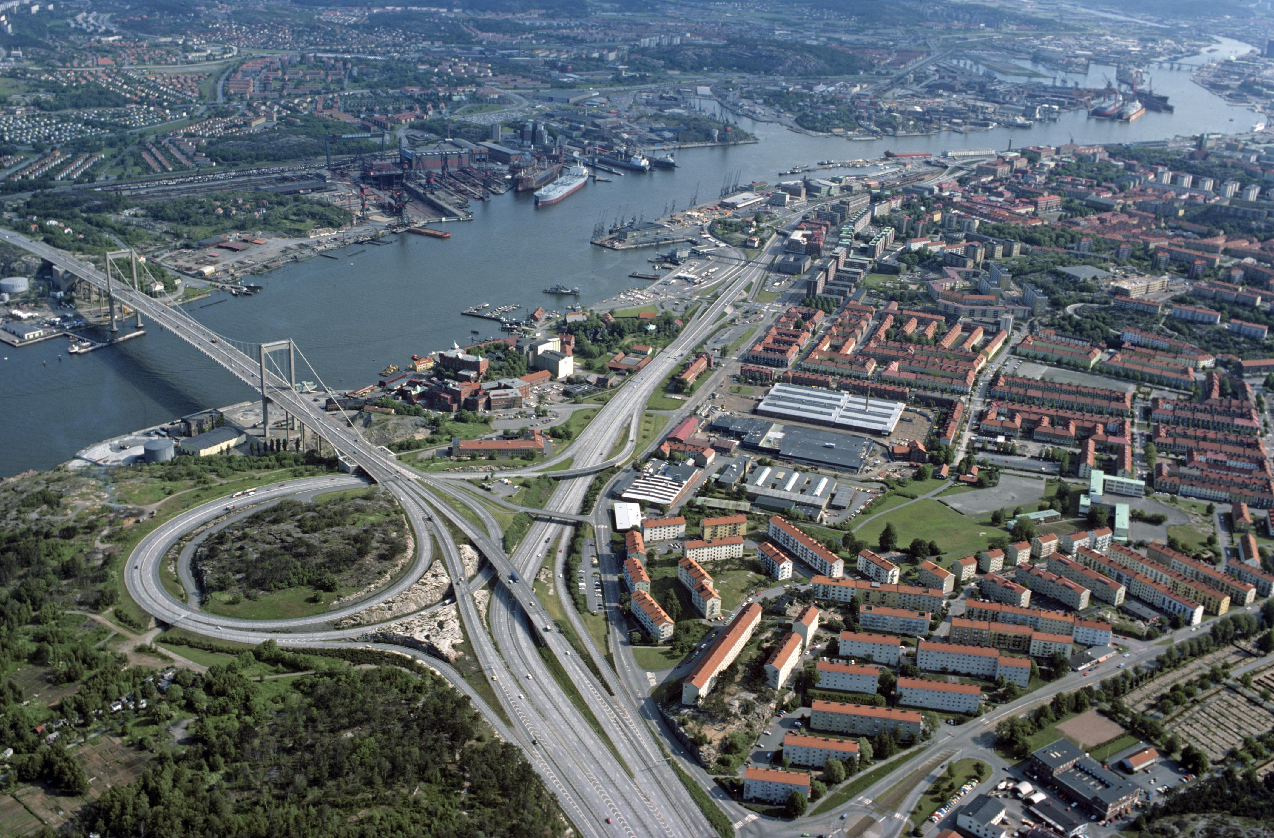 Älvsborgsbron och Rödastensmotet. Göteborg