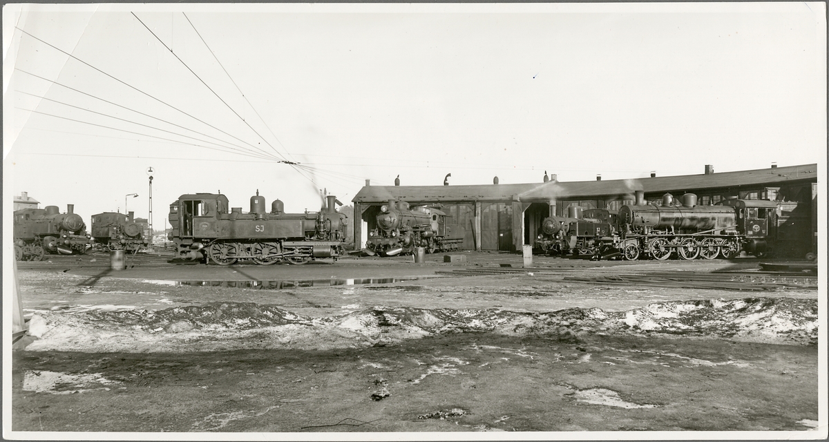 Ostkustbanans, OKB, lokstall i mars 1953. SJ K4 1901.