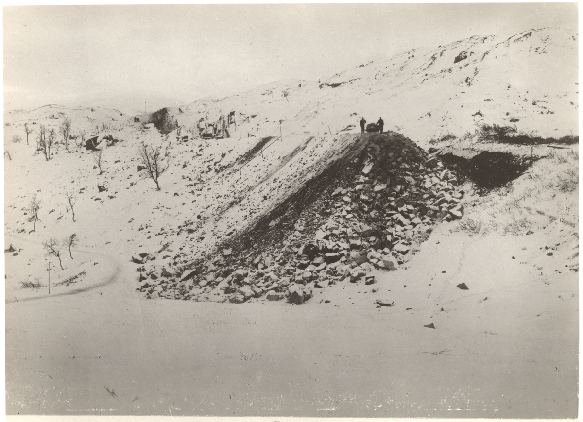 Banktipp mellan Kopparåsen och Vassijaure. Bilden från bygget av Riksgränsbanan.