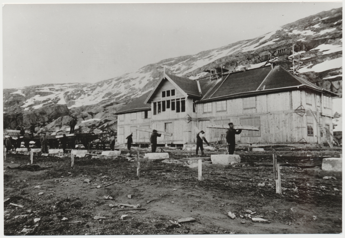Statsbanan Gällivare - Riksgränsen. Rälsläggning förbi stationshuset vid Riksgränsen.