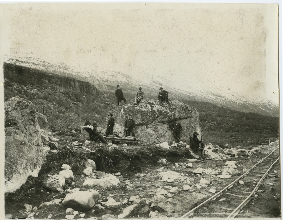År 1900, strax väster om Bergfors har en provisorisk järnvägsbank vid Nakerivaara lagts ut. "Avlöningsherrarna" under Nakerivaara , på väg mot Torneträsk.