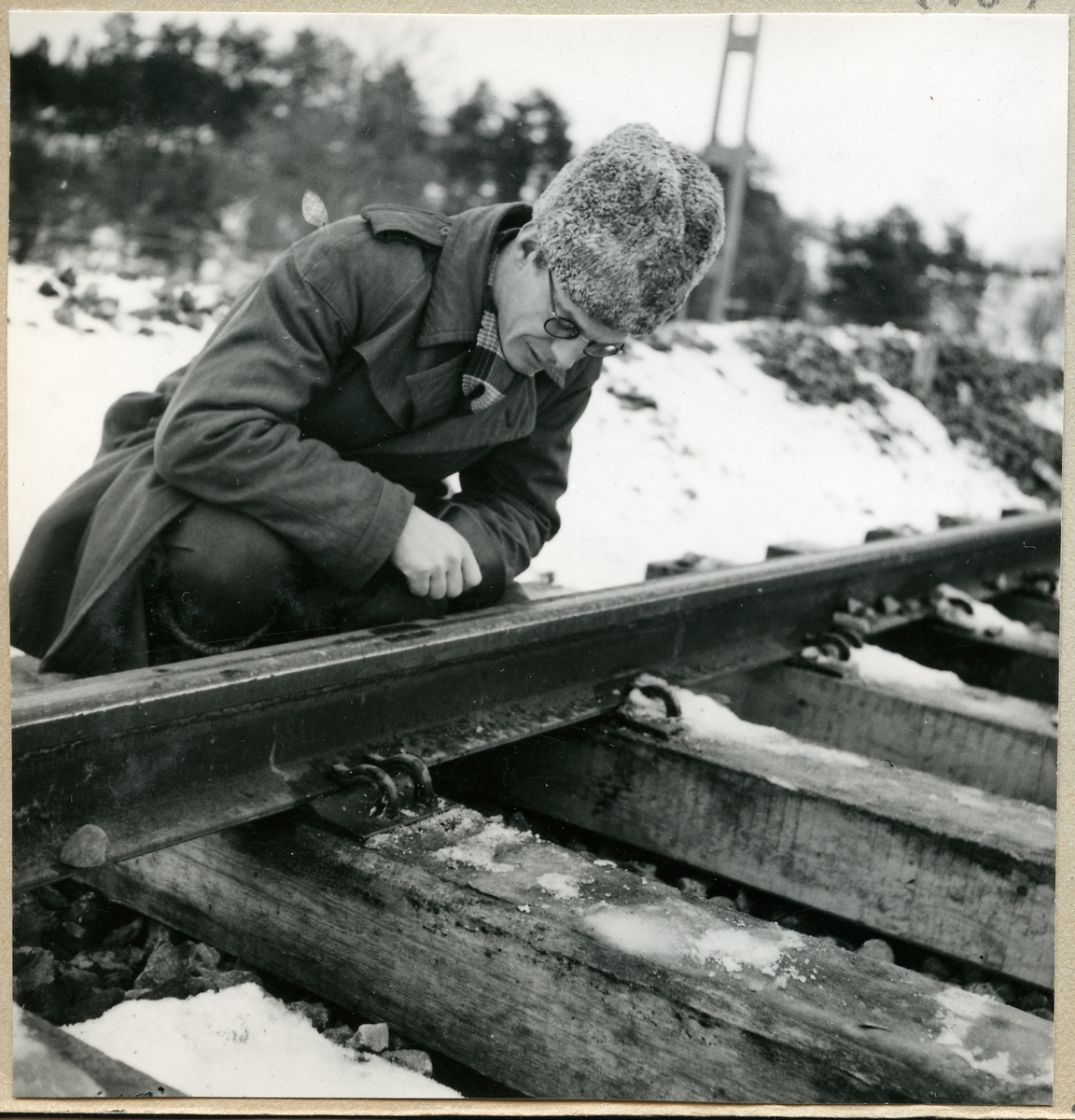 En ny sorts rälsspik, en så kallad fjäderspik.