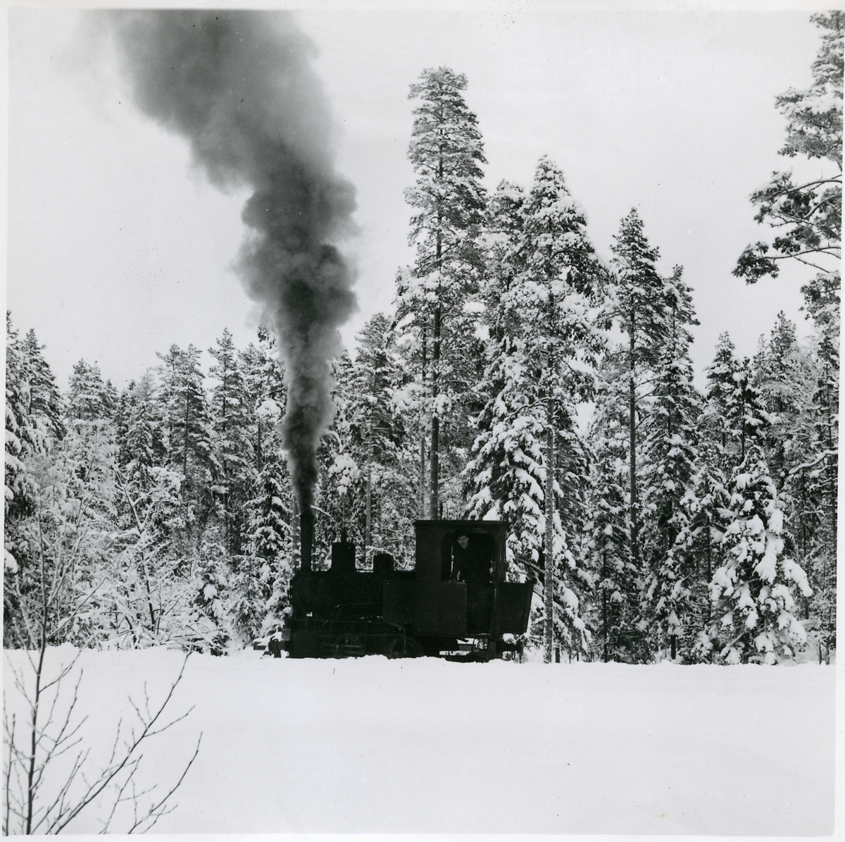 Ånglok vid arbetet med dubbelspåret på linjen mellan Finnerödja och Laxå.